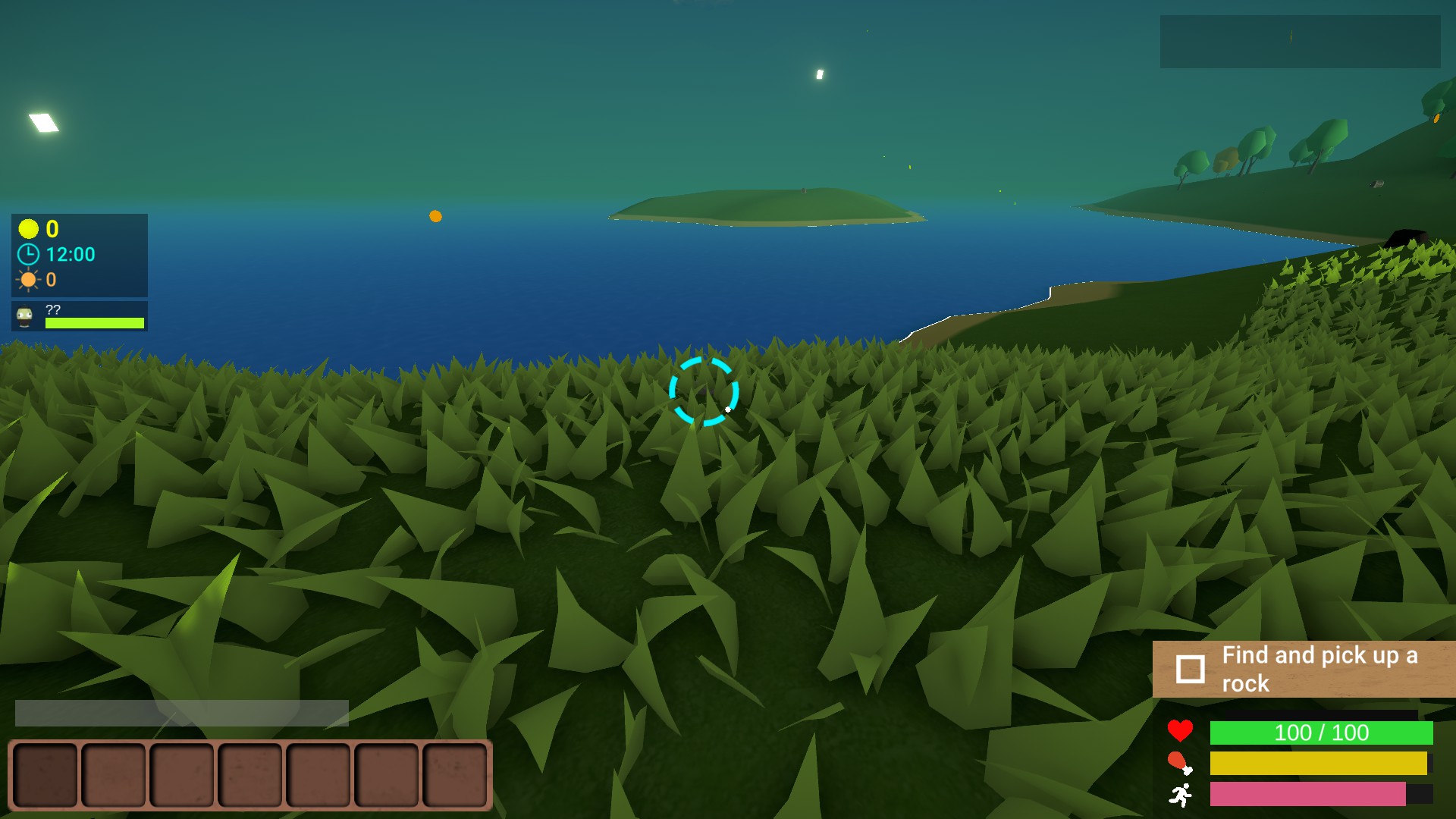 아침에는 나무와 돌을 캐 자원을 모으고, 바닥에 떨어진 버섯과 사과를 주워 허기를 채우고