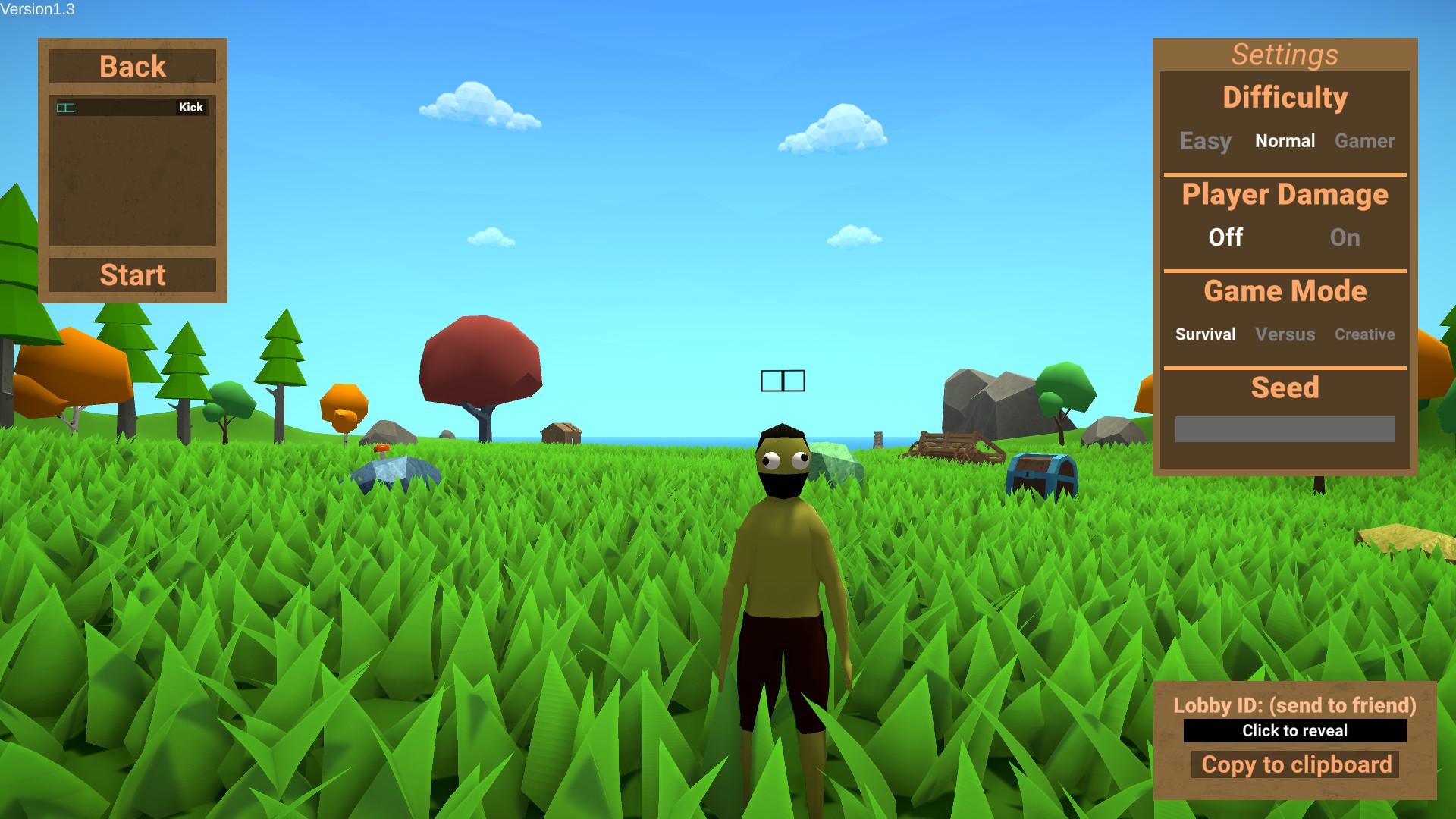 게임을 시작하면 오른쪽 위 화면의 설정으로 난이도, PVP, 게임모드를 설정 가능하고